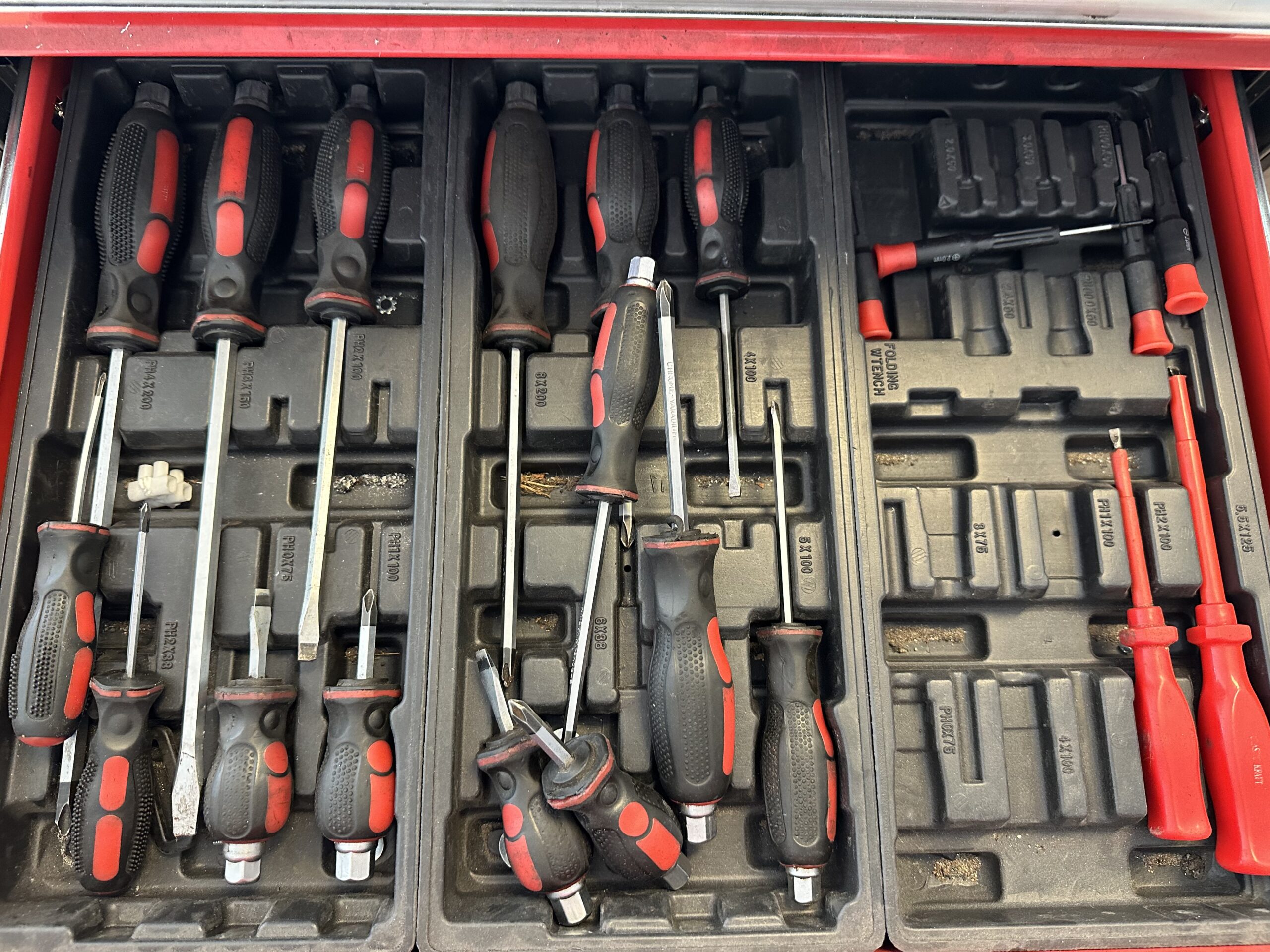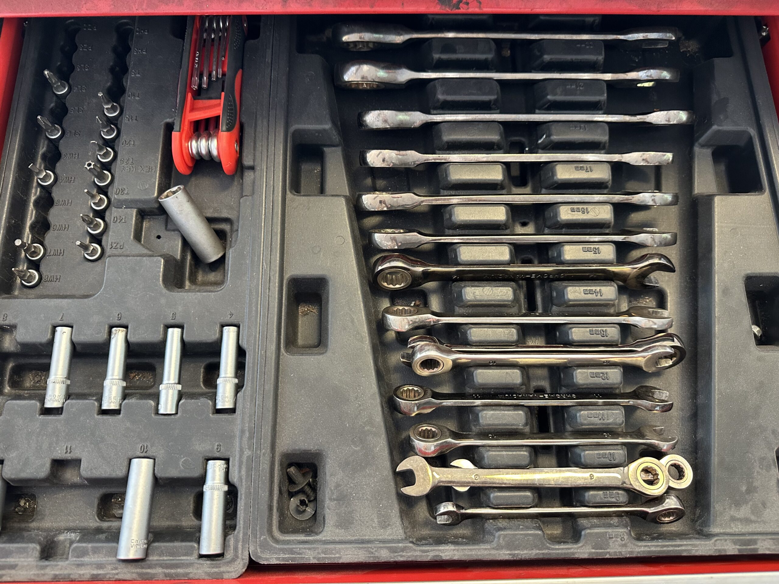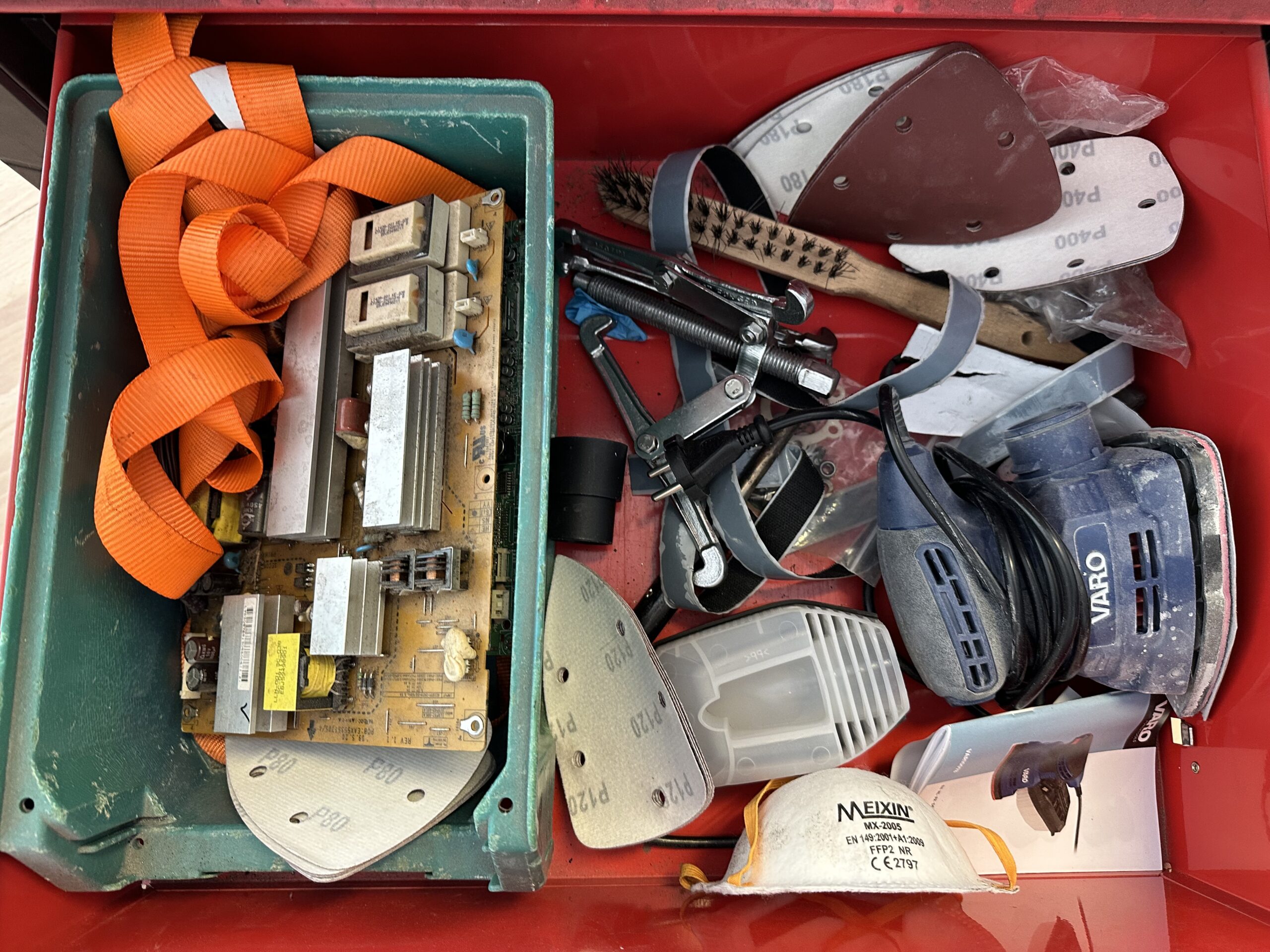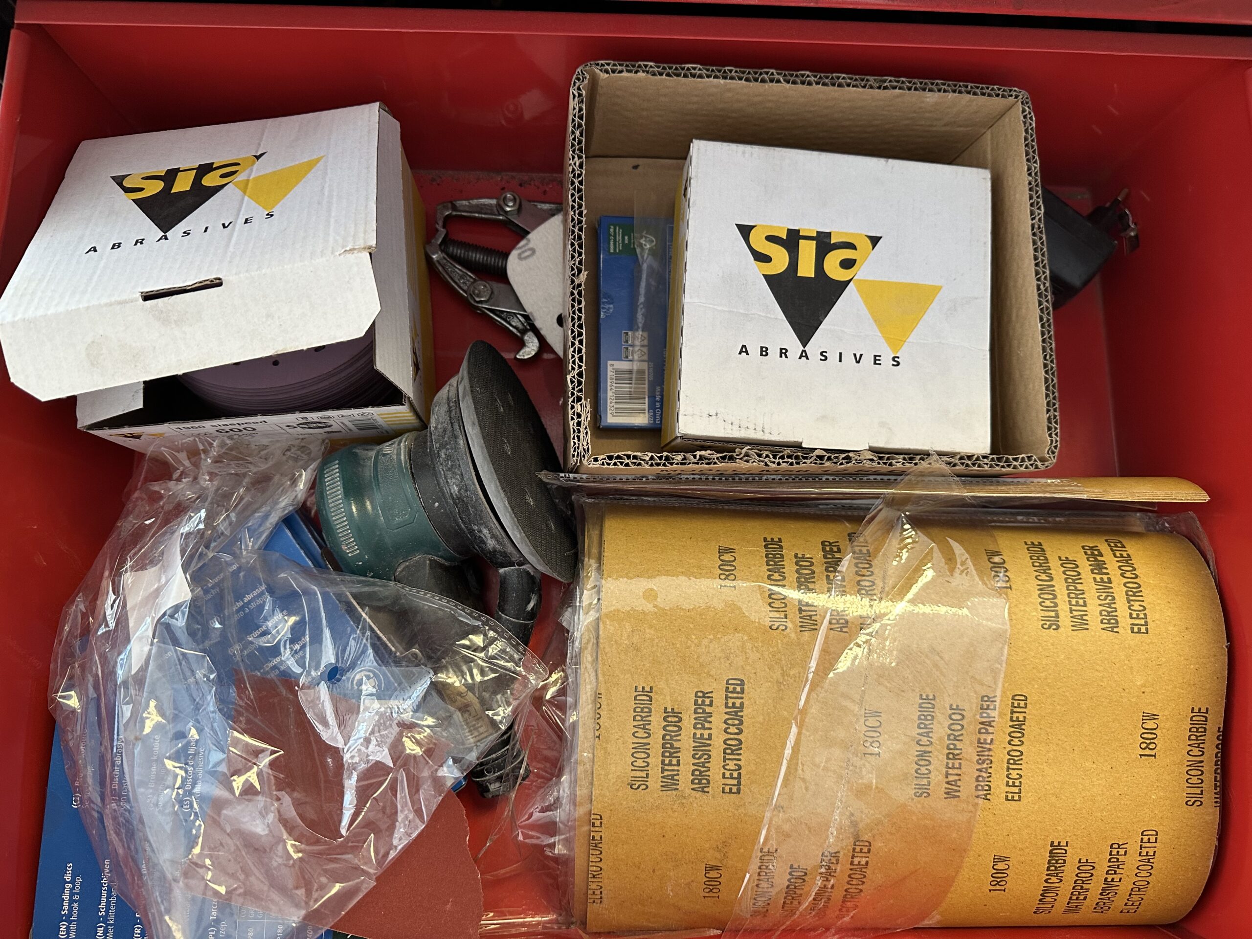 Gedeeltelijk gevuld met o.a. handgereedschap.