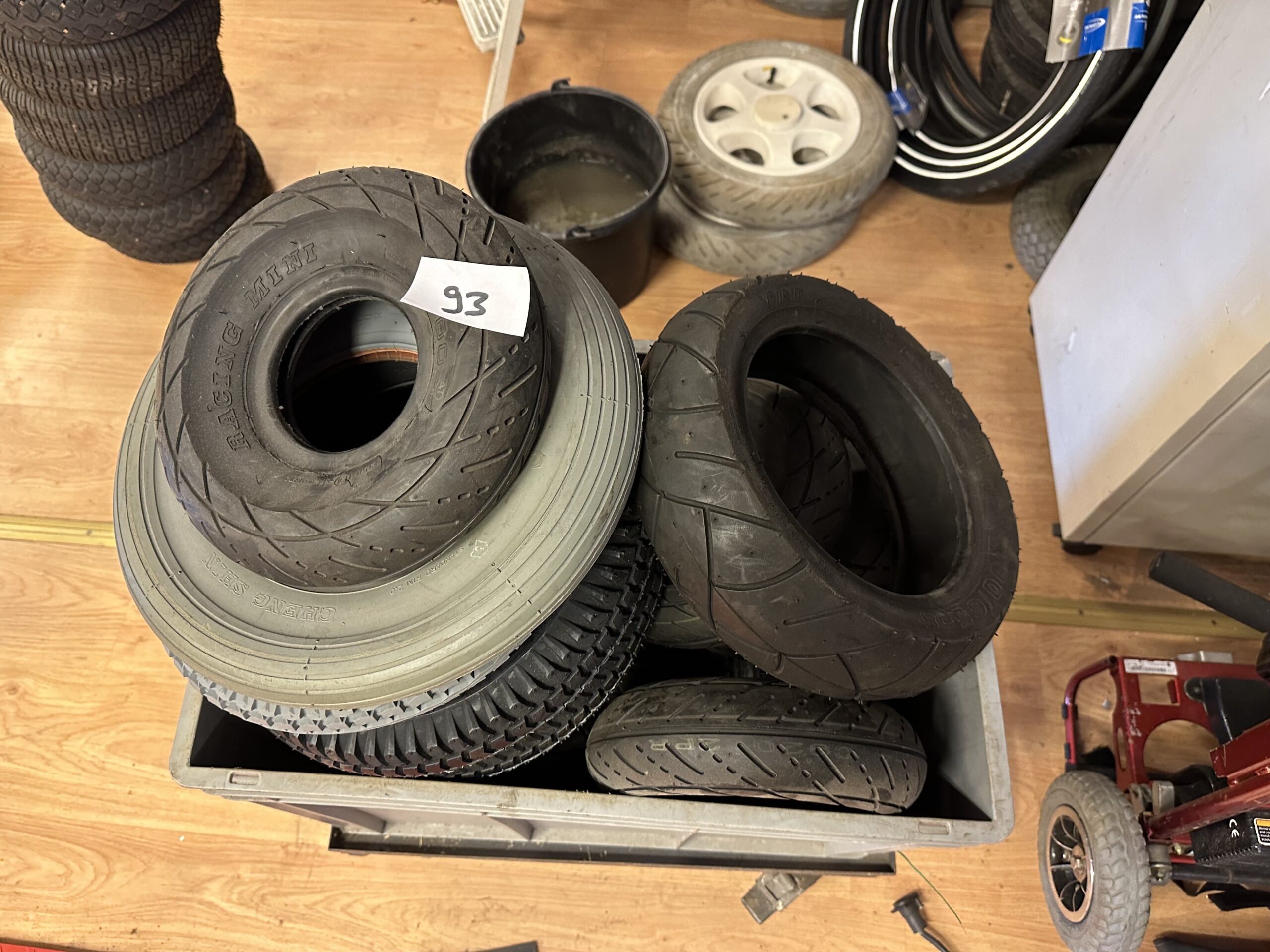 93. Partij banden (17 stuks) voor o.a. scootmobielen (Samengevoegd in kavel 150)